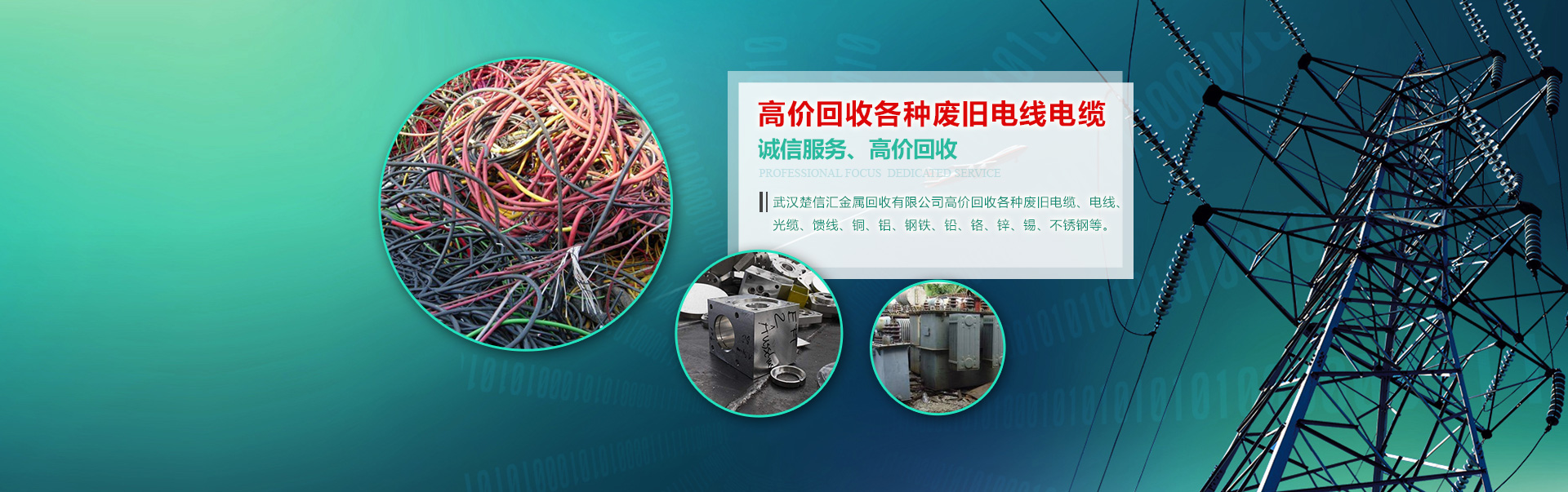 武漢楚信匯金屬回收有限公司高價回收各種廢舊電纜、電線、光纜、饋線、銅、鋁、鋼鐵、鉛、鉻、鋅、錫、不銹鋼等。   1、承接大型樓房、酒店拆遷工程,廠房搬遷及搬遷前的廢舊拆除工程   2、長期回收各類空調,酒店不銹鋼廚房設備,舞廳音響設備,企事業單位的機電、機床設備,庫存積壓產品以及 各種清倉報廢物資。   3、各種管件、電纜、電機、電瓶、電動工具。   4、報紙、書本以及成品或半成品廢料。   我們出價合理:廢舊金屬行情經常變化,價格時升時降,我們把握實時的市場行情,給您提供新的價格信息。以合理的價格,變廢為寶!一個電話便可為您提供回收,拆除清場,一條龍的優質服務!‘免費上門看貨,免費評估’ 聯系電話:13971365360 林先生 QQ:934406246   本公司專業從事庫存積壓處理物資的買賣,廢舊物資的回收,機電設備,五金電料,日用百貨,服裝布料,廠礦車間的所有機械設備 的回收,以及破銅爛鐵等金屬物品的回收??傊?從事所有有價值物品的收購和處理。常年高價上門收購:電腦,電視,冰箱,冰柜,家具,交通工具(如自行車,電動車,摩托車等),酒店餐館設施,餐具和灶具等。價格肯定 高于小商販的價格。